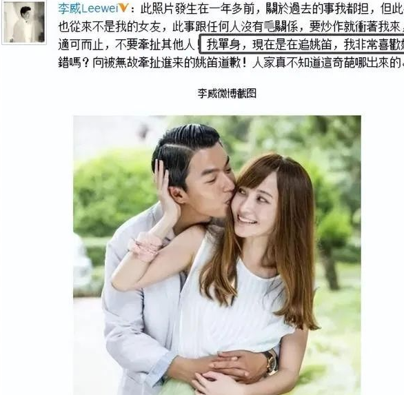 2015年李威发文承认正在追求姚笛,在当时引起了广泛热议,但最终这段感情无疾而终。