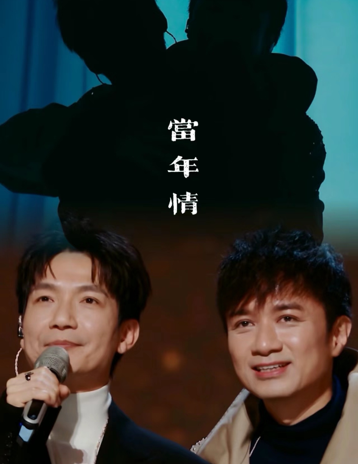 背后是当年黑白影像的老旧纪录,面前是《声生不息》鲜活的舞台,《当年情》再度添上新鲜,时代流转,歌者轮换,而歌声依旧,陈楚生和古巨基一开口,瞬间拉回《英雄本色》港片年代。