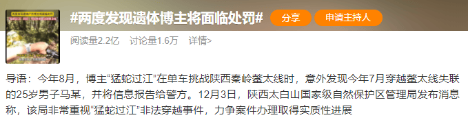 12月5日,#两度发现遗体博主将面临处罚#一话题登上多平台热搜榜。