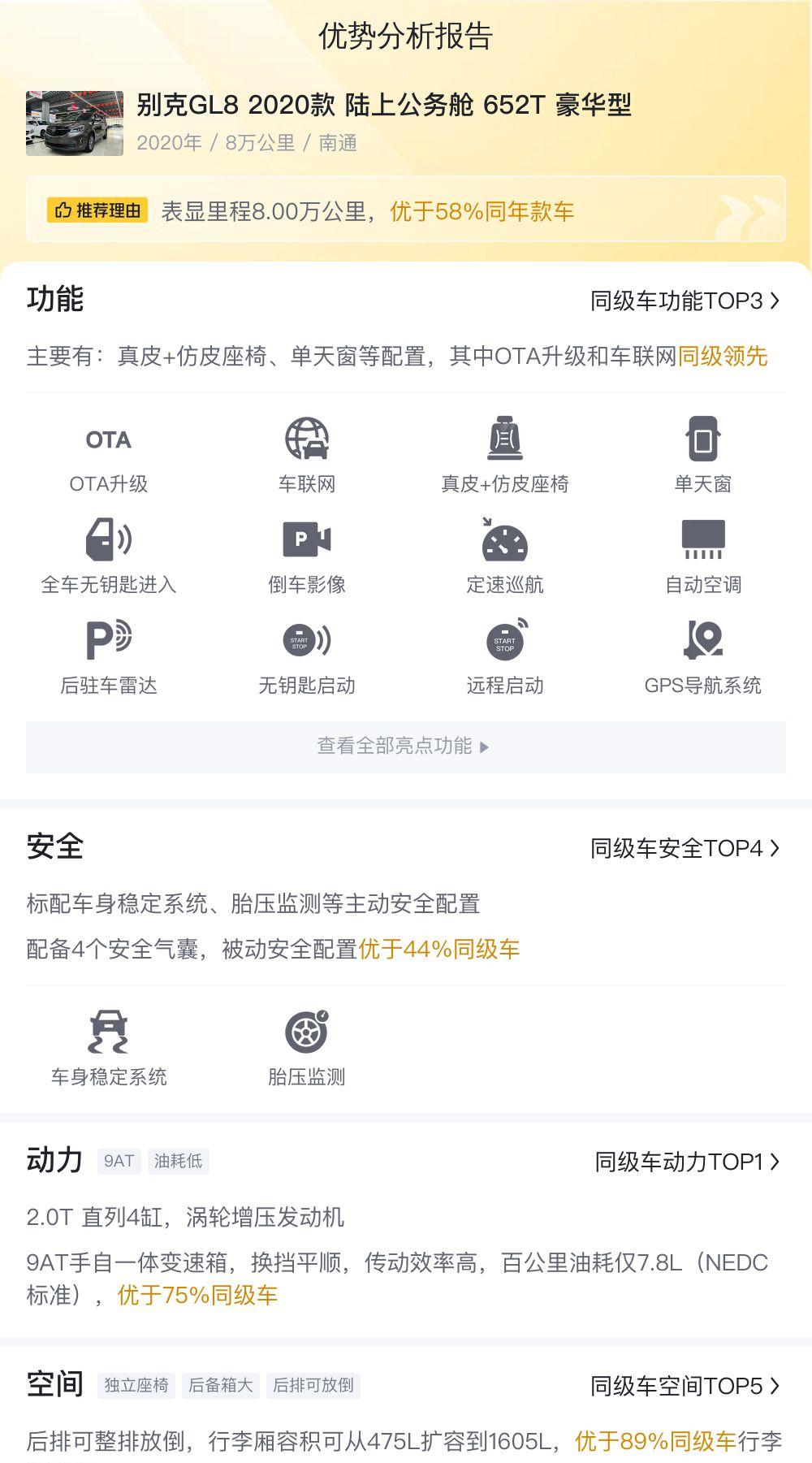 配置:  丰富的配置,满足了日常使用和商务接待的需求。空间: 宽敞的乘坐空间和灵活多变的座椅布局,是GL8的一大优势。动力: 2.0T发动机动力充沛,9AT变速箱换挡平顺。油耗:  7.8L/100km的综合油耗,在同级别车型中表现出色。品牌: 别克GL8拥有良好的市场口碑和较高的保值率。
