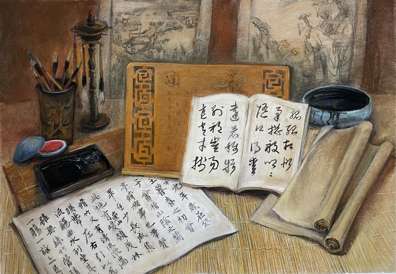 《文房》 54.5cm×78.5cm 色粉画 2021年