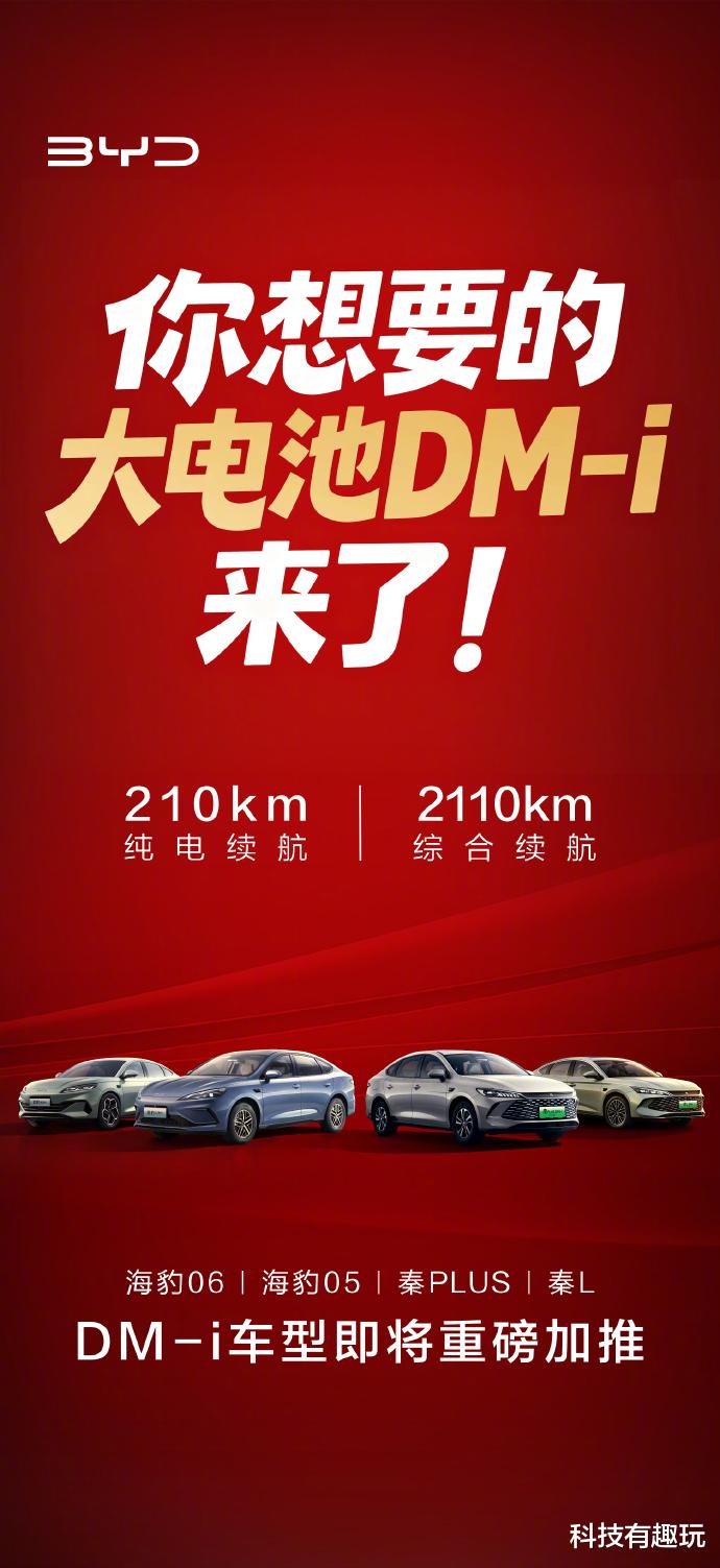 #你想要的大电池DMi来了#2026开年插混市场的第一个王炸,被比亚迪稳稳抛出!秦PLUS DM-i、秦L DM-i等四款热销车型同步加推210km CLTC纯电续航版,不仅将同级续航直接翻倍,更以技术前瞻性为行业划定新赛道,插混电力再加码的背后,是比亚迪对市场需求与政策导向的精准把控。