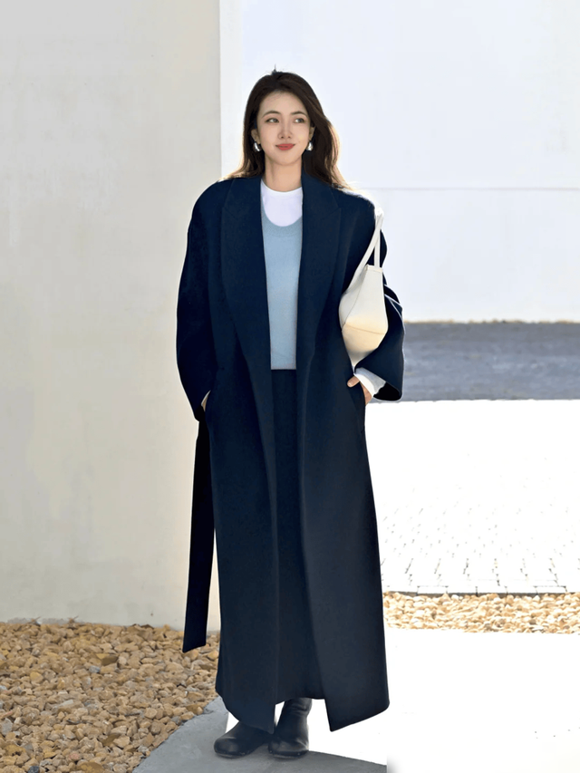 深色系大衣则更适合那些追求高贵气质的女性。黑色、深灰或藏蓝色的大衣,不仅具有显瘦效果,还能通过简单的搭配传递出一种沉稳与自信。在搭配时,可以尝试一些对比色,例如配合亮色围巾或手袋,增加视觉层次感,同时不失优雅。深色大衣在材质上可以选择羊毛或呢料,这样更能增添一份质感和奢华感。