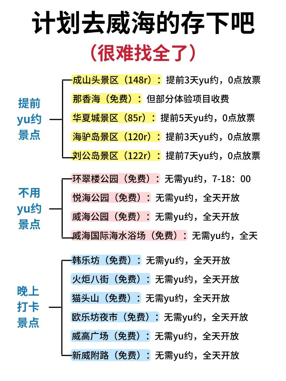 威海旅游得提前做好攻略,该予约的景点需要提前予约哦,不然热门景点容易跑空!打算来威海旅游的友友们,这份攻略请收下🌊