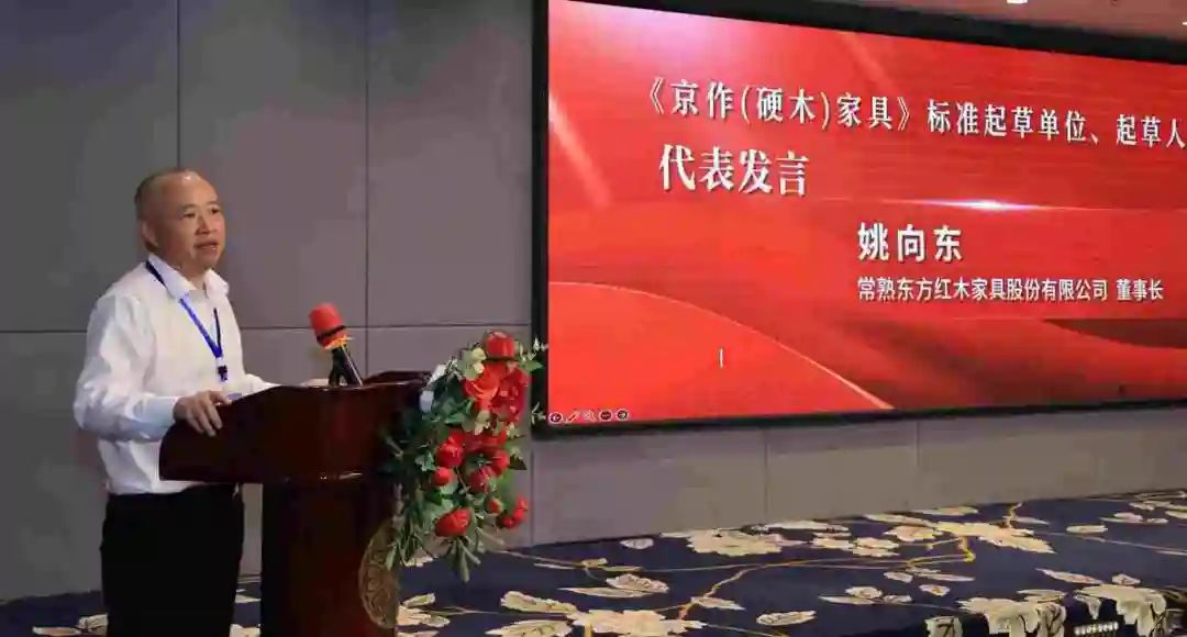 在本次标准起草单位名单中,常熟东方红木家具股份有限公司作为江南地区红木家具制造的领军企业名列其中。同时,公司董事长姚向东还以起草人身份,深度参与了标准的技术论证与文本修订工作。