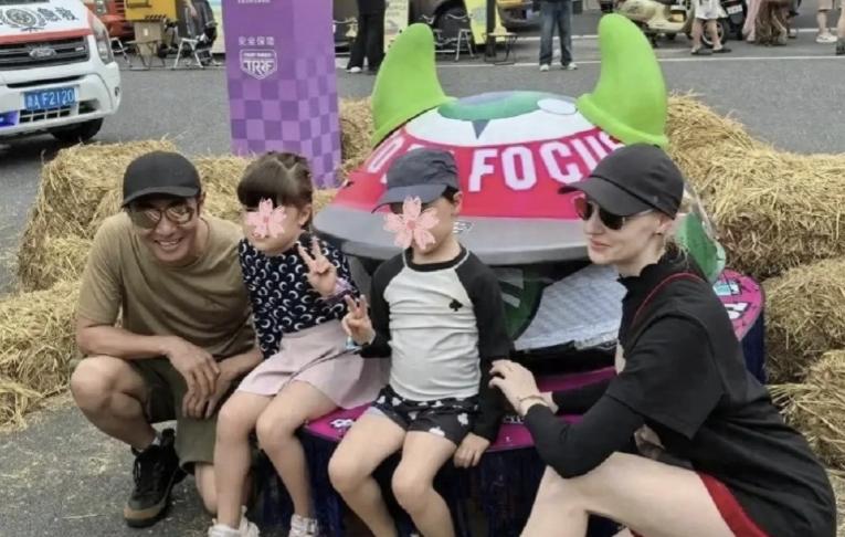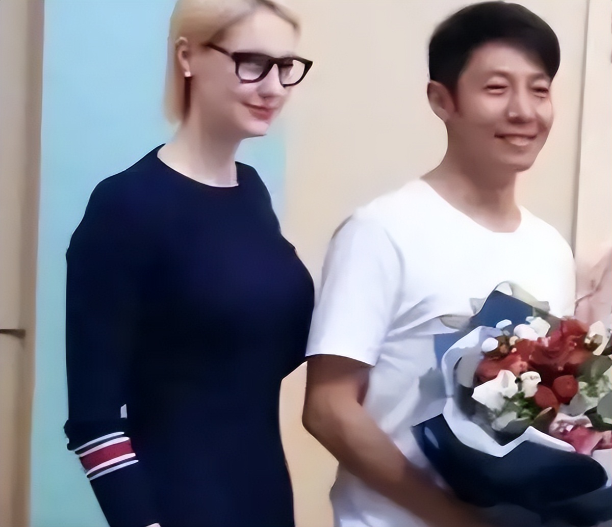 站在妻子身旁,笑容比在综艺节目里面显得要松弛很多。