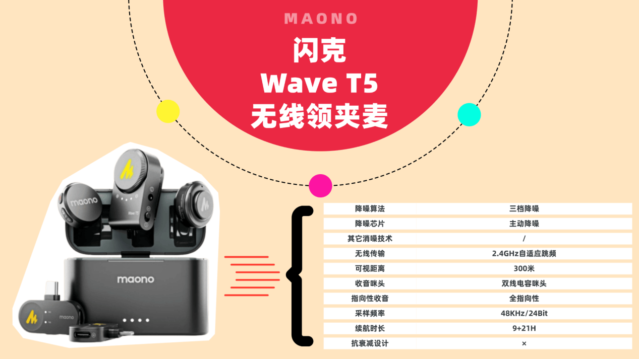 闪克Wave T5聚焦日常创作基础收音需求,摒弃复杂功能,将成本集中在核心性能优化上。其内置全向电容咪头,信噪比达78dB,配合基础数字降噪算法,可过滤轻微环境杂音,满足室内短视频、网课录制、小型直播等场景需求。