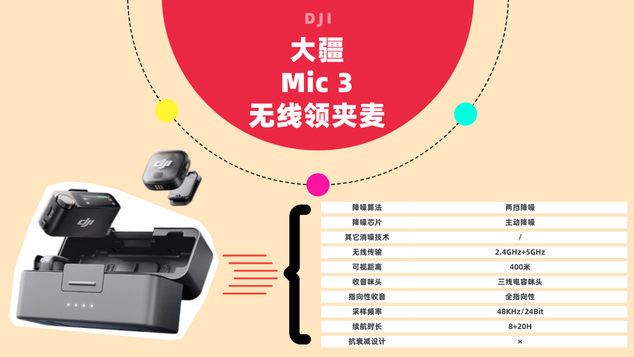 大疆Mic 3凭借成熟的技术积淀,聚焦专业创作场景核心需求,拒绝冗余功能堆砌,专注提升收音清晰度与传输稳定性。其搭载的自研数字降噪技术,可精准过滤风噪、电流噪等常见干扰,配合高灵敏度全向咪头,能捕捉20Hz-20kHz全频域声音细节。