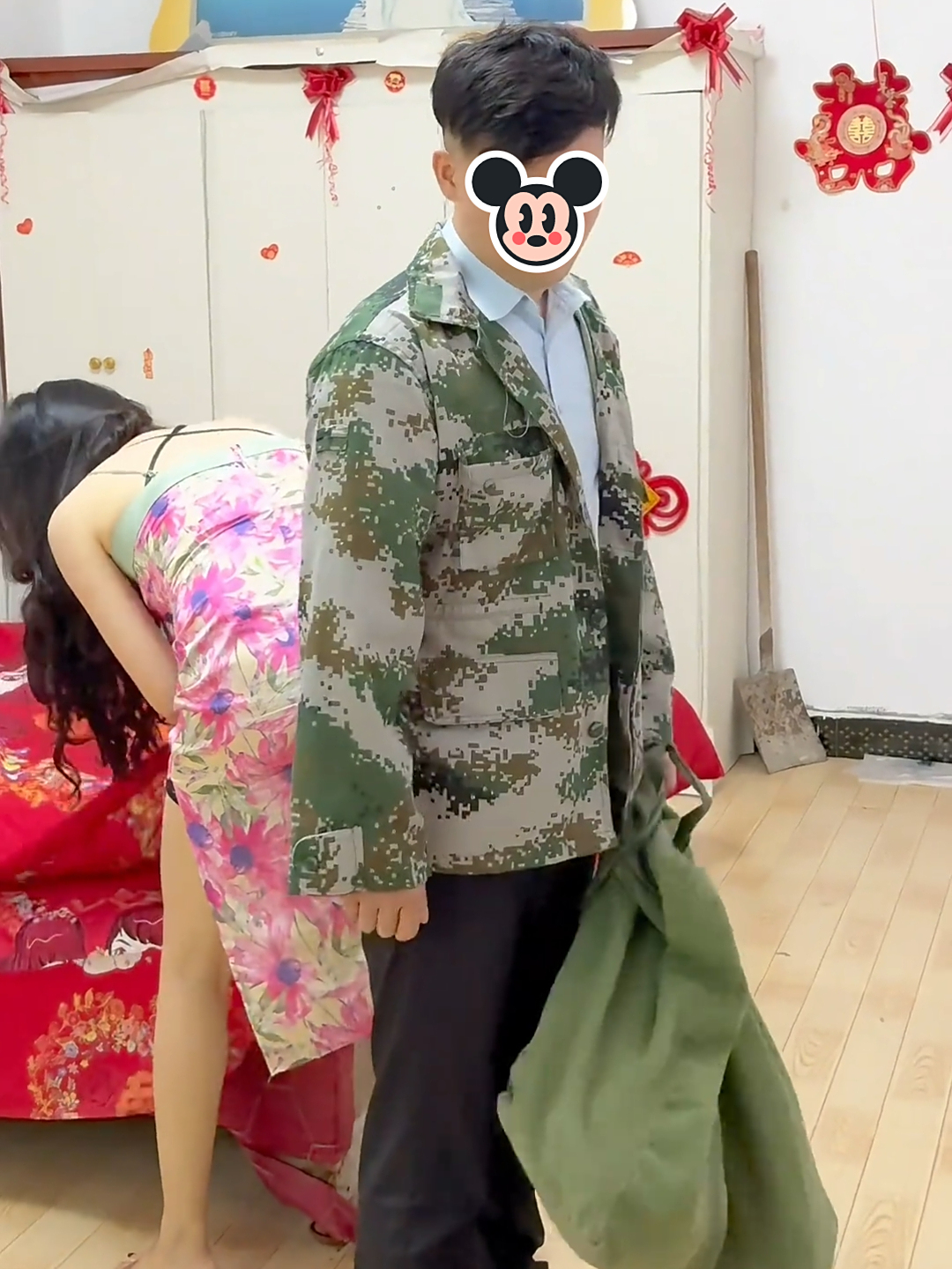 妻子背对着房门,正专注地在床边收拾东西。他轻手轻脚地走过去,眼中满是久别重逢的深情,他张开双臂,从后面温柔地抱住了妻子,想要给她一个惊喜,也倾诉自己半年来的思念。