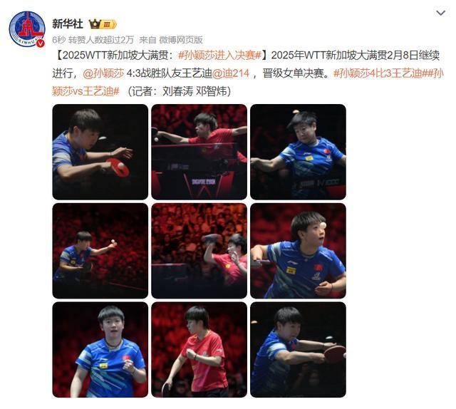 这场比赛结束之后,央媒新华社第一时间送上祝贺,孙颖莎成功进入决赛,4 - 3战胜队友王艺迪,昂首挺进女单决赛。在我看来,这一场比赛,不仅仅是一场体育赛事,更是一场意志力和技巧的全面较量。孙颖莎和王艺迪都展现出了极高的竞技水平,她们的拼搏精神值得每一个热爱体育的人敬仰。