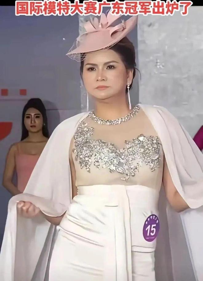 这话听着像那么回事儿,可网友一扒,漏洞比筛子还多。先说说 15 号这位 “太太组冠军”,人家也不是素人阿姨,之前拿过 “世界夫人太太大赛大湾区最佳影视潜质奖”,这次穿的礼服还是广府袄裙混搭西式设计,走的是成熟女性风采路线 —— 按理说太太组不拼纤瘦,拼的是气质和韵味,可问题是赛事当初压根没提有 “太太组” 啊!赛前宣传只字未提分组,颁奖时也没说谁是哪个组的,现在出了争议才冒出来 “太太组”,这不就是临时编的借口吗?