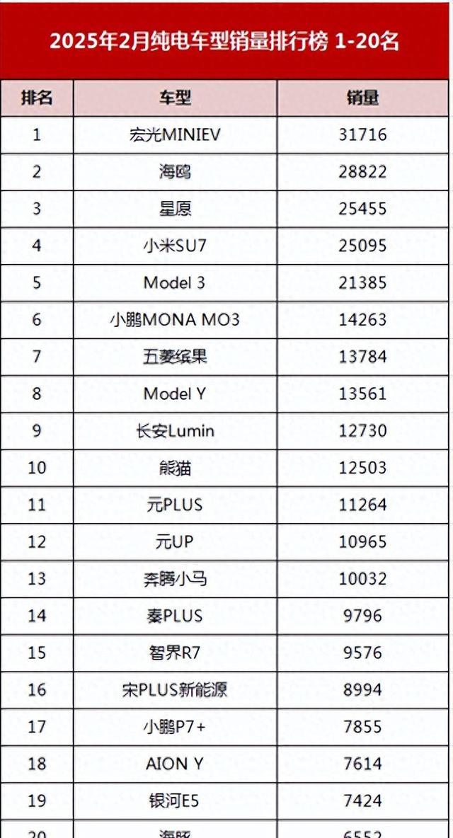 但翻看2月份的纯电车销量榜,可以发现纯电车的销量并不好,那些嘴上喊着追求纯粹的人现实里似乎并不想为这种纯粹买单。