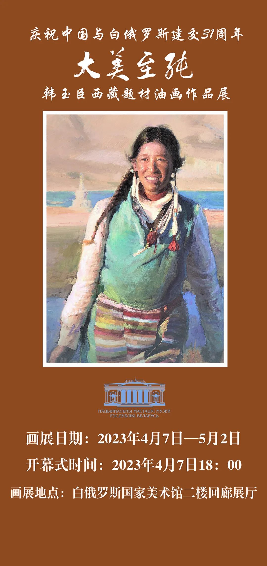 为庆祝中白建交三十一周年,“大美至纯—韩玉臣西藏题材油画精品展”将于2023年4月7日在白俄罗斯国家美术馆开幕。此次展览共展出韩玉臣西藏题材作品42件,是韩玉臣继法国、意大利、荷兰、比利时等国举办西藏题材展览后,再次将“艺术无国界”的精神发扬光大,向白俄罗斯人民讲述中国故事。