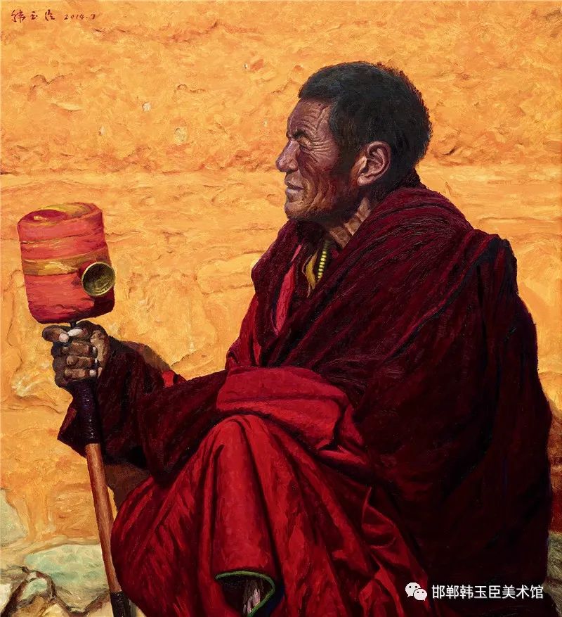 韩玉臣讲到:“藏区160万平方公里,囊括了所有地貌,神奇雄浑大美。藏区自然环境的恶劣,造就了高原子民的执着坚韧纯朴。用色彩描绘雪域的大美,用画笔刻画藏民族的崇高形象,是我唯一的艺术追求。”