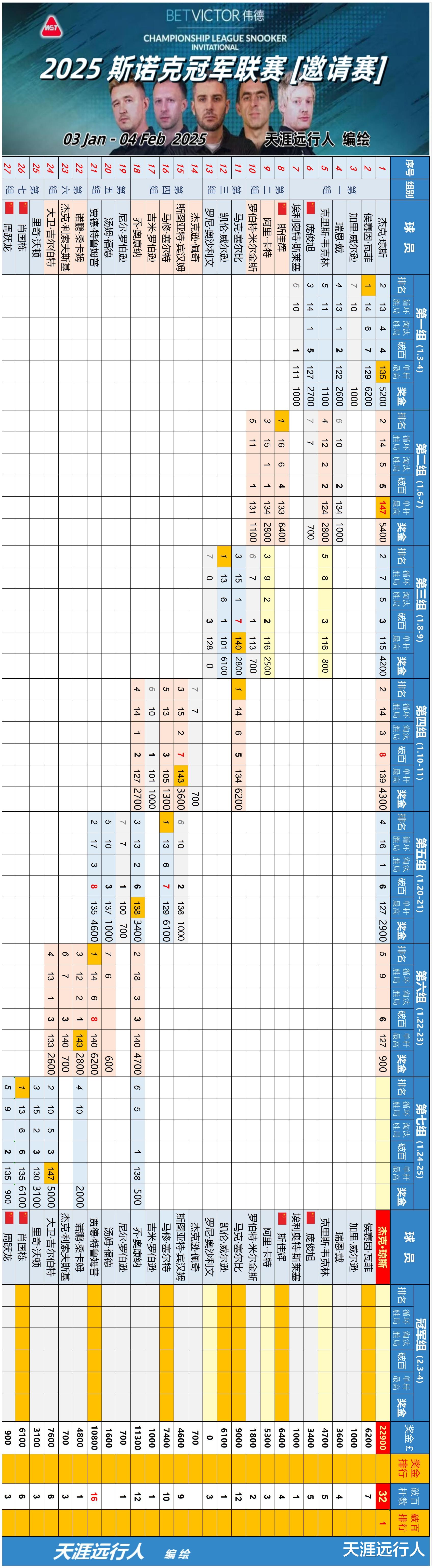 冠军联赛邀请赛版第七组小组循环赛后半程六场战报赛况