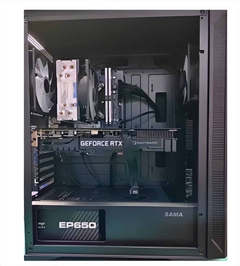 首先,他打开了机箱侧板,看到主机里的散热器风扇、显卡风扇、还有电源风扇都是正常转动的,并且,主板也没亮任何故障灯。