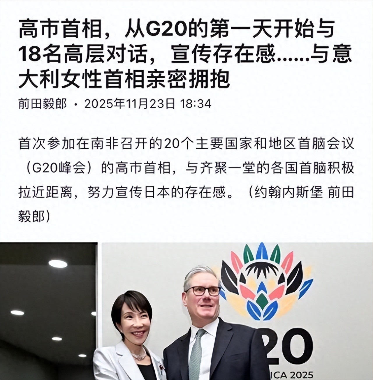 G20峰会作为南非首次主办的国际盛会,突出非洲发展优先事项、全球公平和南南合作。高市早苗的活动体现了日本外交的务实侧重,通过与多国领导人的交流,巩固同盟关系并推动议题讨论。尽管与中国缺乏互动,这次峰会仍为她提供了展示外交手腕的舞台。