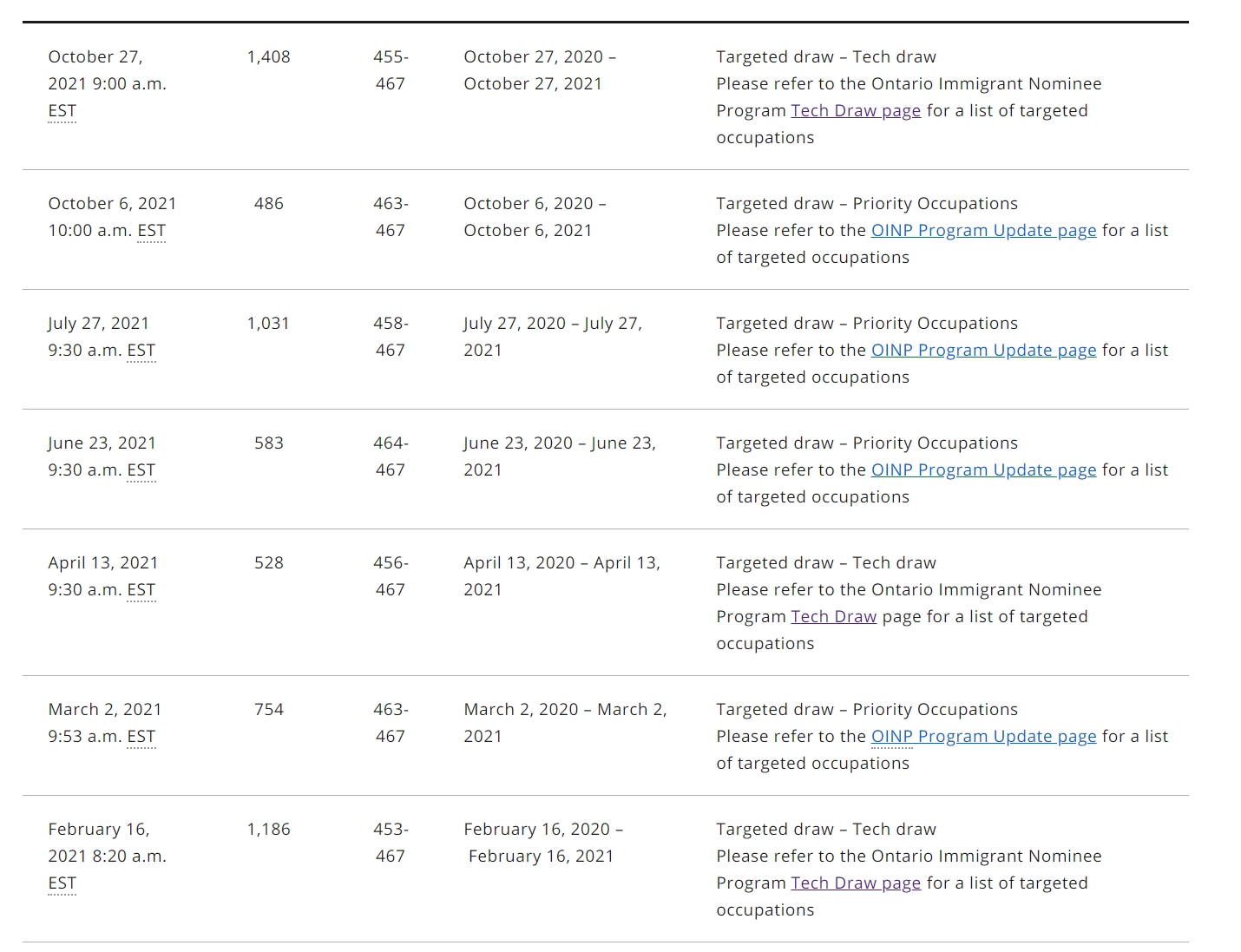 8)这个类别目前获邀的分数线较高,在CRS455-467分之间,而且邀请的频率不确定,可能隔了好几个月才邀请一次。