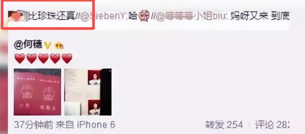 当时网友质疑是炒作,但她还专门转发评论说"比珍珠还真"。