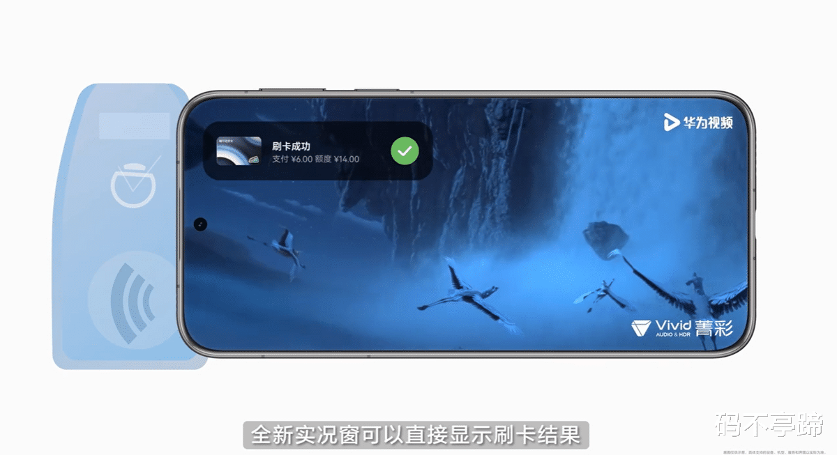 以往用手机刷卡,最烦的就是突然弹出的全屏界面。无论是看视频还是进行视频通话都被迫中断。现在华为钱包碰一碰会弹出“实况窗”,能让你更加“优雅”地进行刷卡操作,它的顶部实况窗只显示必要的刷卡信息,比如刷卡成功扣款金额、交通卡余额等,但又不会占据整个屏幕。这个设计对于那些生活节奏快的人来说,简直不要太友好。