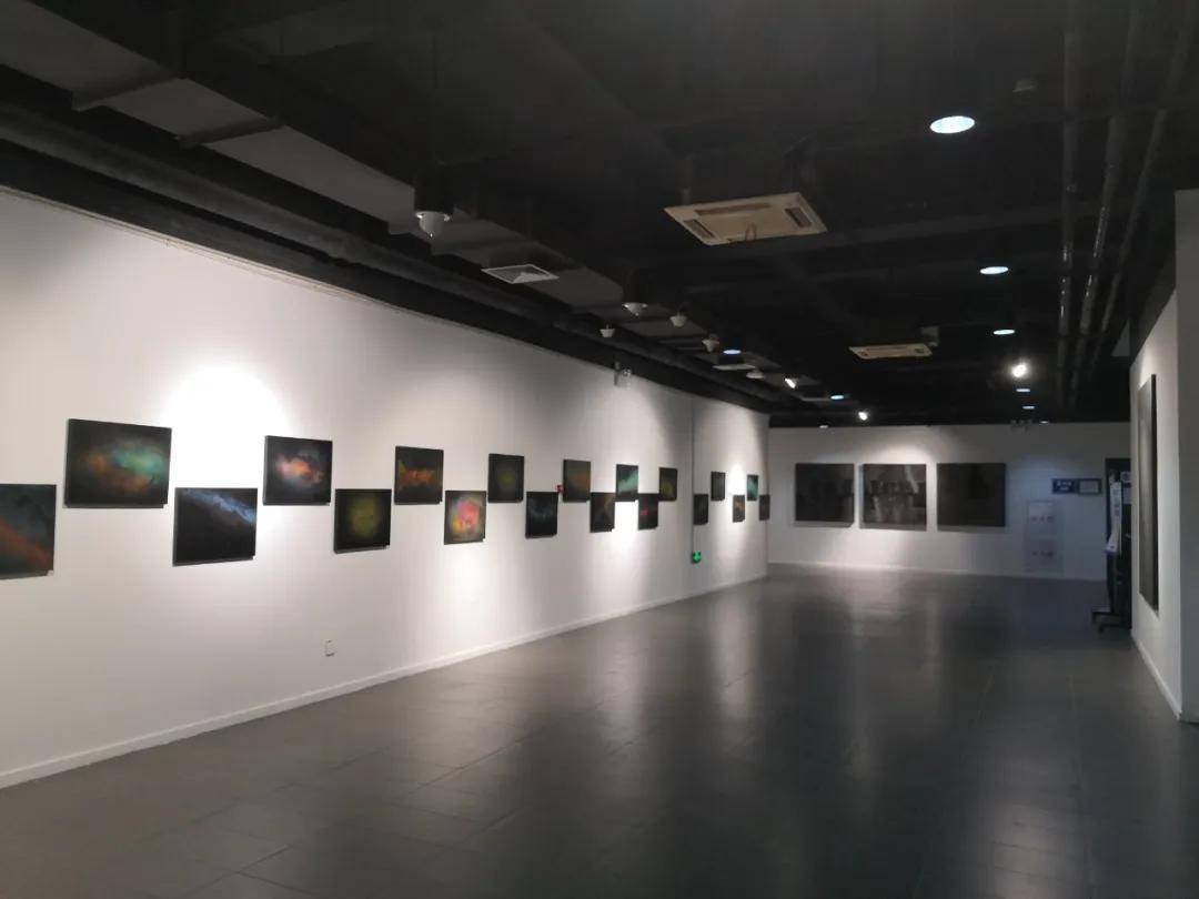2024年8月,我在郑州彩虹盒子美术馆第一次看到他的个展,“当世界独有天地——井中月观念绘画巡展”(郑州、北京、西安)。2025年10月,我在天津美术学院美术馆再一次看到他另一个主题的个展,“非同一性的星丛——井中月未来艺术巡展”(惠州、北京、天津)。在上次巡展中,从《世界是意志的表象》《宇宙的本质》《从天而降》《在别的天体上》等作品,我感受到他的艺术与叔本华《作为意志和表象的世界》相对应的理念。在这次巡展上,从《暗能量·引力场》《破碎虚空》《时空叠加》《恒星群与尘埃云》等作品,我看到他的创作受到阿多诺“非同一性”哲学和德勒兹“块茎学”理论的影响。