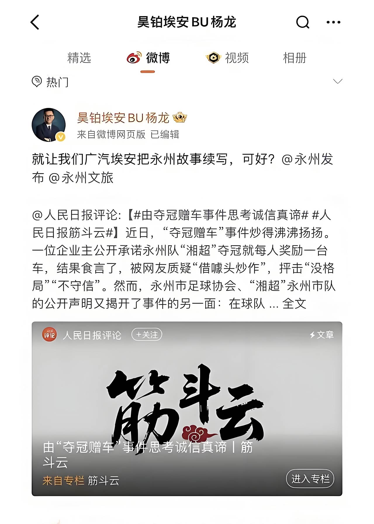 风波未息,广汽埃安主动回应。其高管在社交平台表示:“就让我们把永州故事续写,可好?”一语轻落,却承载千钧。作为在湘累计投资约200亿元的本土化企业,广汽埃安此次行动并非简单营销,而是对体育精神的致敬,对平凡奋斗者的礼赞。