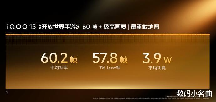 突破芯片性能上限,iQOO 15搭载Monster超核引擎,在《大型开放世界手游》原生60帧+极高画质模式测试下,最高负载地图跑图30分钟,1%LOW帧57.8帧;性能满血释放,电量支持也令你无后顾之忧,iQOO 15采用7000mAh蓝海大电池,支持40W无线充电,超大电量,充电方式超快更便捷。