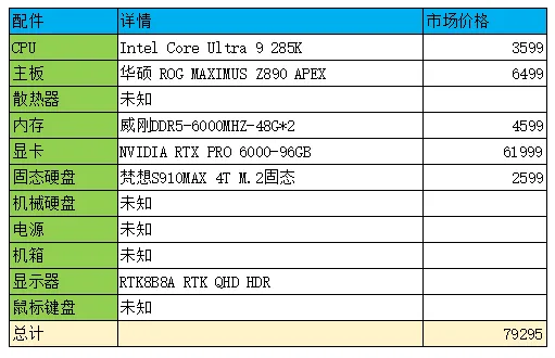我也按照当下的市场价进行了个估计,在很多配件未知的情况下,这台机子的价格已经接近8万了。按照已知配件的状况,其他未知的配件也不会太差,无论如何,这台自己的价格不会低于10万。具体明细如下: