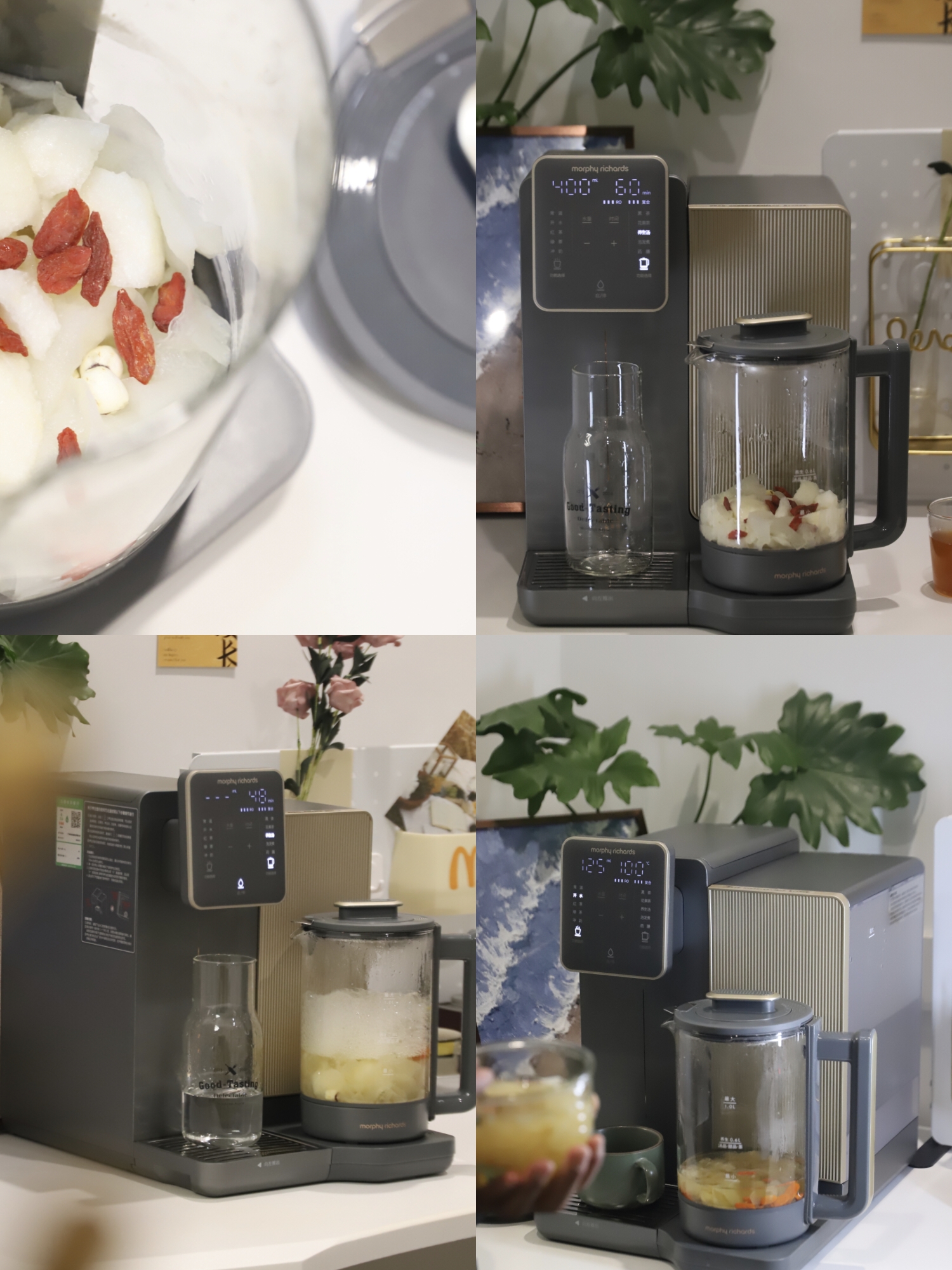 又或者是滋阴润肺的银耳汤,银耳碎加上枸杞、莲子、梨等配料,如果想要快速出胶,最好选用新鲜银耳,放养生壶选择养生汤模式,这样,无需看管就能喝上糯糯的银耳汤啦。当然,因为银耳胶质含量较高,所以一定不要贪多,银耳量要合适。