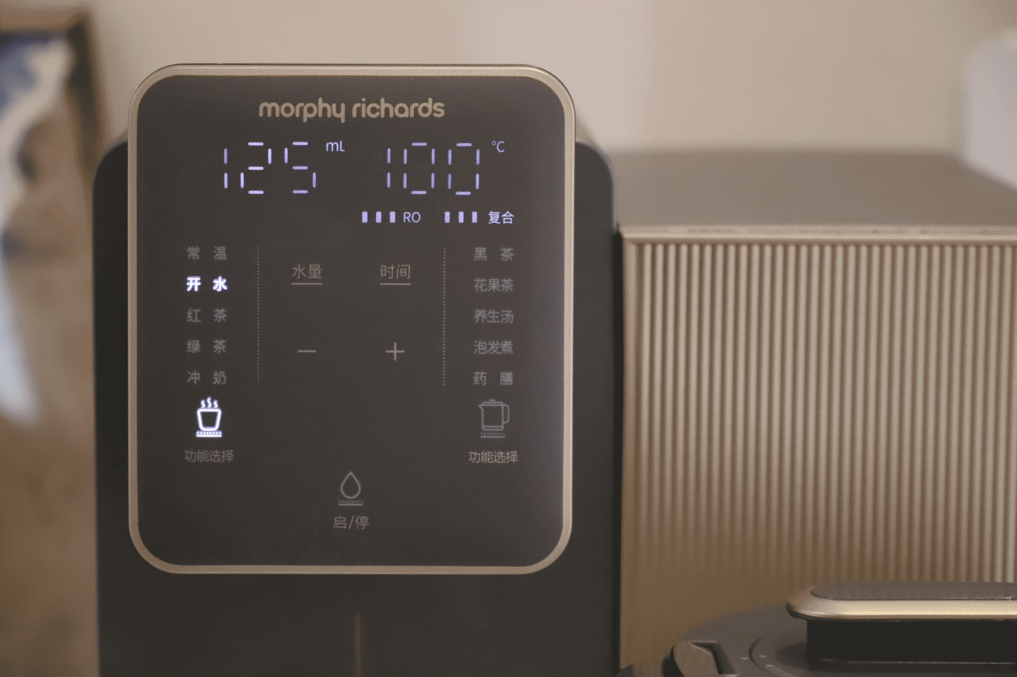 相比于传统的不锈钢管加热方式,这种加热技术不仅控温能力更强,温度精准度也更高,还能智能识别出水量,进行常温、开水、茶饮、冲奶等功能选择,满足了我们的不同热饮需求。