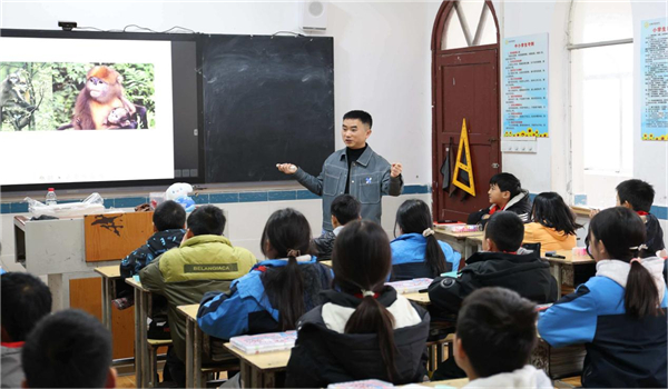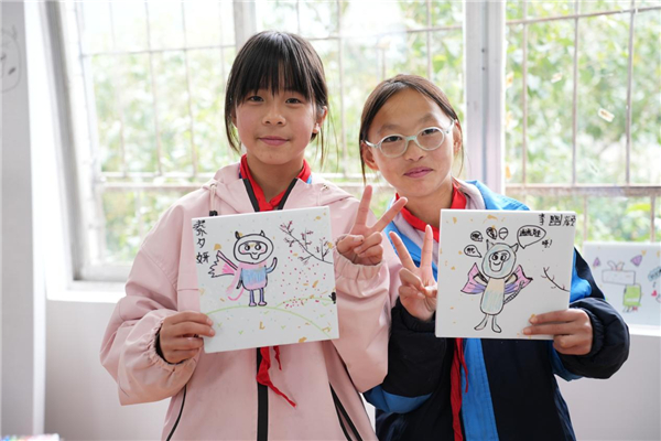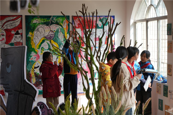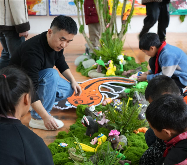 许峰与孩子们一起布置“梵净精灵童话乐园”
