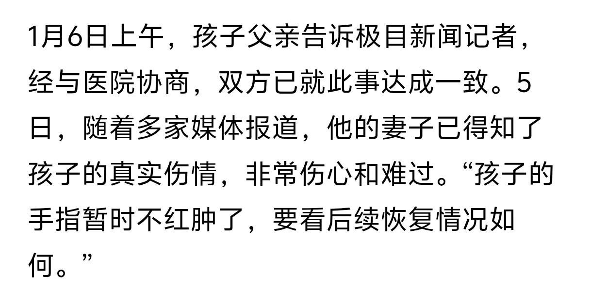 另一方面,盛先生为儿子揪心。刚出生就残疾。以后长大了当兵都当不了。以后的生活,处对象,交友方面会不会自卑?这个手指还能不能恢复如常都是未知数。