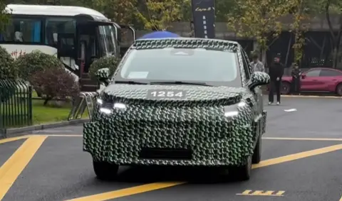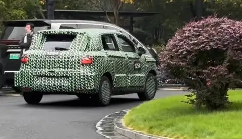 尾部方面,采用上窄下宽的敦实造型,尾灯伪装太厚看不清,但大概率是贯穿式。车顶带小型扰流板,高位刹车灯位置神似B10。