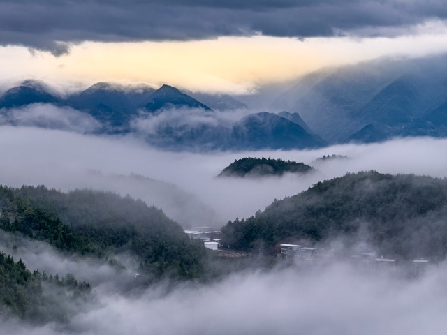 核心看点:海拔 2480 米的 “川东观景台”,乘索道登顶可俯瞰层林尽染的山峦,红豆杉栈道旁红果点缀,秋季云海概率超 60%,平流雾中玻璃栈道如临仙境。