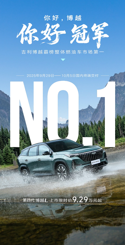 在A级SUV这个红海市场,想要脱颖而出绝非易事。然而,第四代博越L却在近期创造了令人瞩目的战绩:在9月29日至10月5日这一周内,累积交付量达到7179辆,霸榜整体燃油车市场第一,并且连续八周稳坐A级SUV全品牌全能源销冠的宝座。现象级市场表现的背后,是产品力“好看、好开、好智能”这三大核心价值的极致展现,它精准地诠释了何为“新一代三好SUV”。