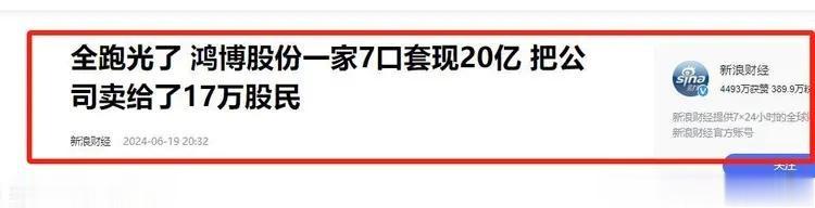 一家七口通过精准减持、虚假转型、协议转让等一系列操作,完美落袋31亿现金,卖掉亲手创办的鸿博股份后举家逃往美国。