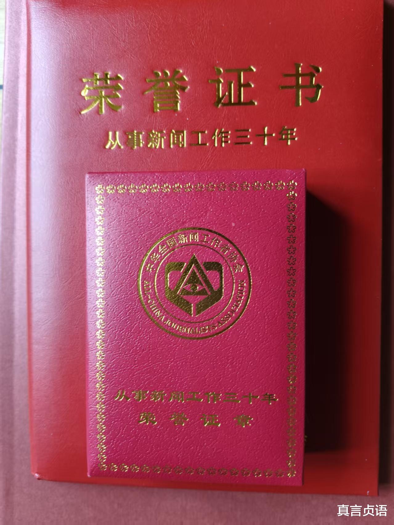 俩证的关键词显而易见:荣誉,记者,贡献,三十年。
