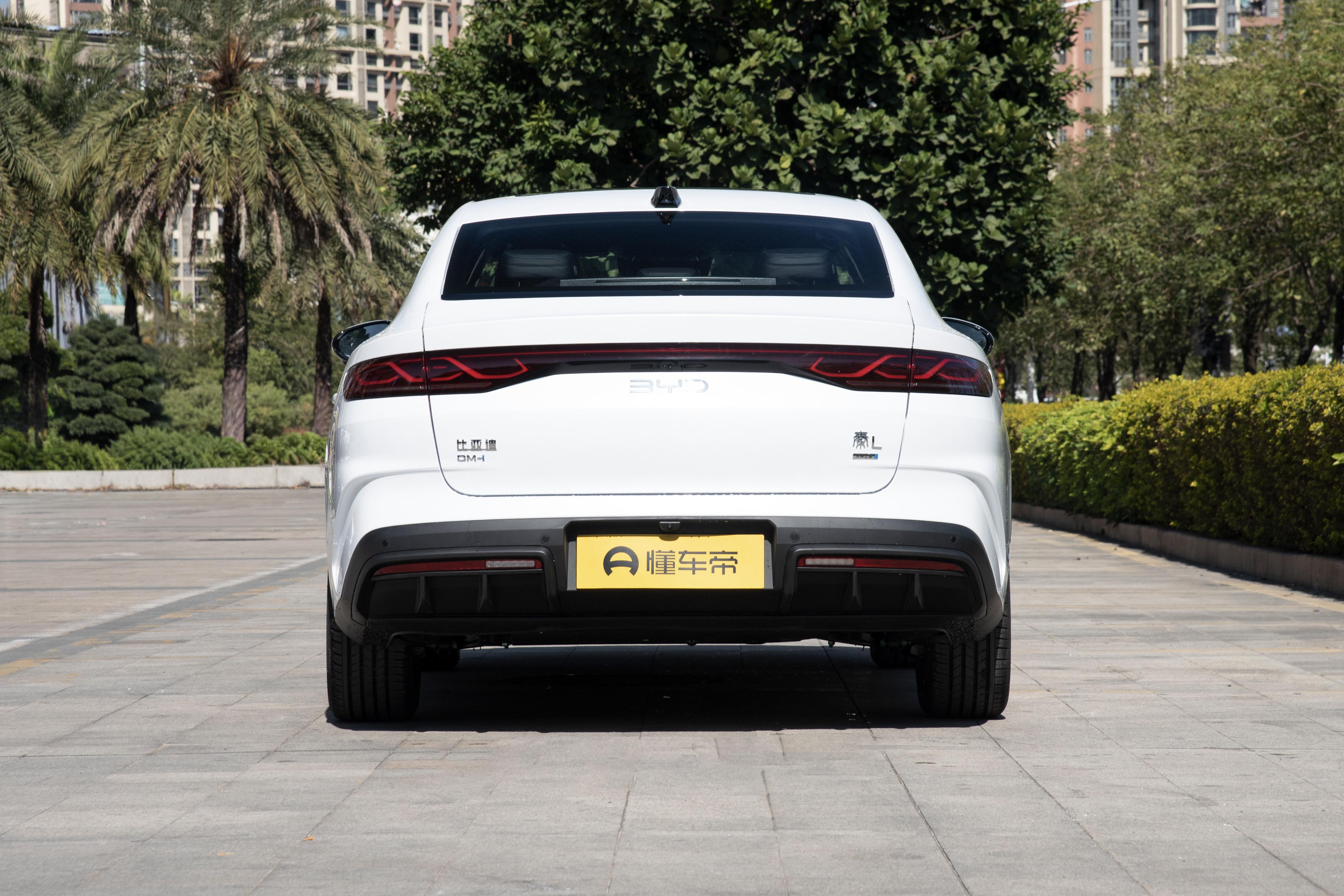 秦 PLUS DM-i 同样采用大尺寸车头格栅,前灯组间以黑色饰条衔接,尾部贯穿式灯组设计与秦 L DM-i 采用差不多的贯穿式尾灯,整体造型保持简洁实用的风格。