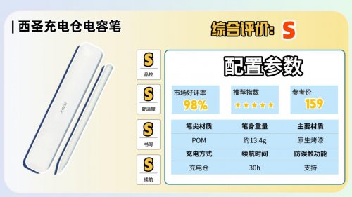 推荐理由:打破同价位性能上限,百元价位最值得入手的平替电容笔
