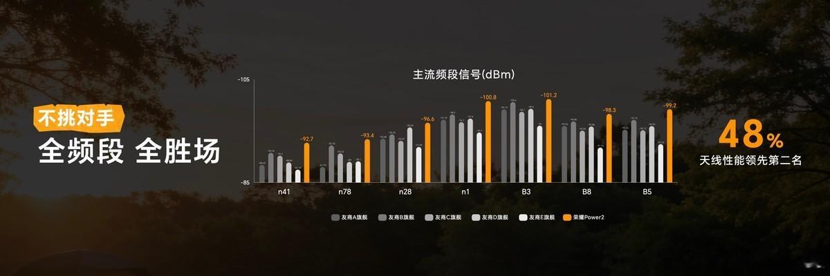 荣耀Power2搭载旗舰同款鸿燕六翼天线,并搭配荣耀自研射频增强芯片C1+,支持25根天线,100%的中框天线占比,多通道上下行覆盖能力均达到行业第一。同时,荣耀Power2不计成本行业首创了主流旗舰都未配备的平行双轨天线设计,打造了行业最强的低频超级四天线,弱网信号表现提升200%,通信表现超越行业主流旗舰机。凭借各项通信硬实力,荣耀Power2在电梯、地铁、高铁等弱信号及各类户外场景中,均能实现流畅通信不中断。其更以整机通过国家无线电监测中心检测中心(SRTC)电梯强信号与精准导航双场景五星认证的权威背书,实力印证“电梯信号王”称号。