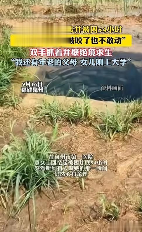 9月13日早上9点,湖南48岁的覃女士在晋江灵源街道树林散步时,不慎跌入一口废弃水井,直到54小时后才被救出。