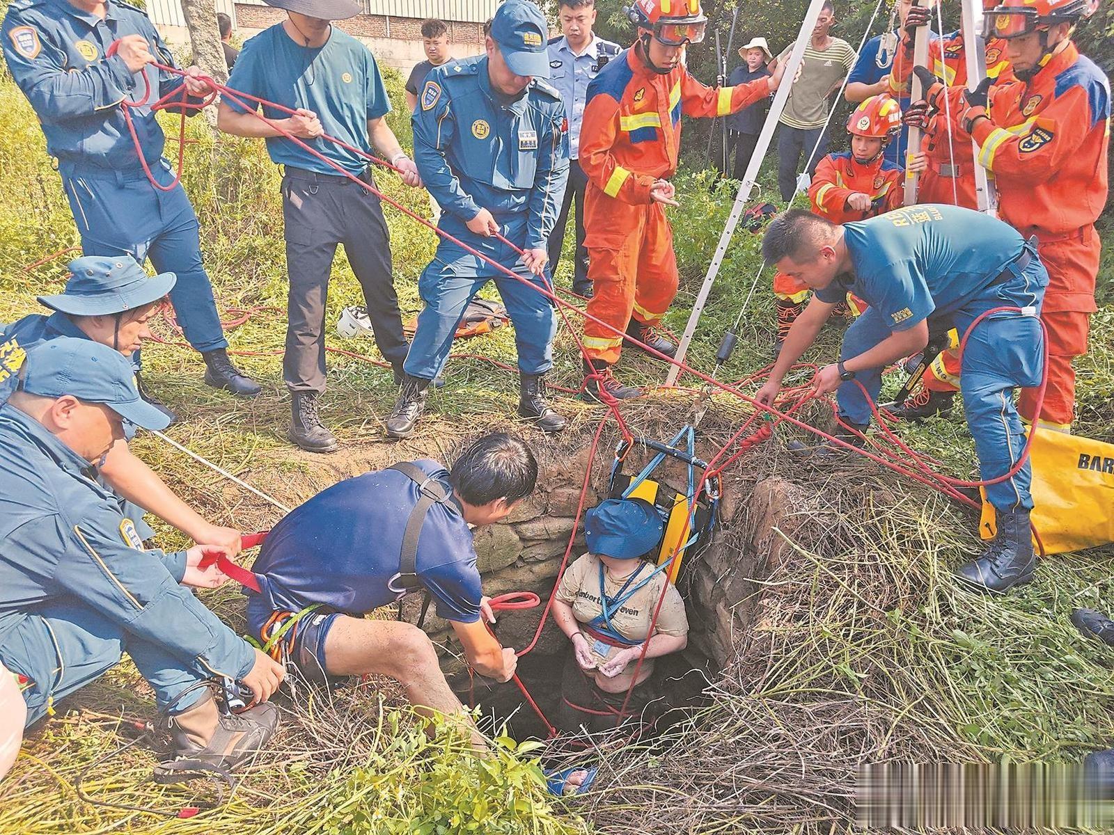 副队长吴加克系上安全绳,毅然下井。他到达井底后第一时间扶住覃女士,轻声说:“别怕,我陪你在这儿。”覃女士这才彻底瘫在他身上。