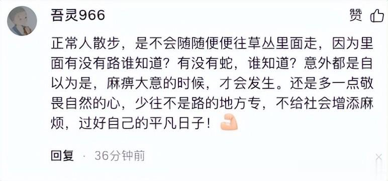 也有人提醒,散步本就该走正规道路,不要随意钻草丛,更别掉以轻心,意外很多时候就是因为大意。