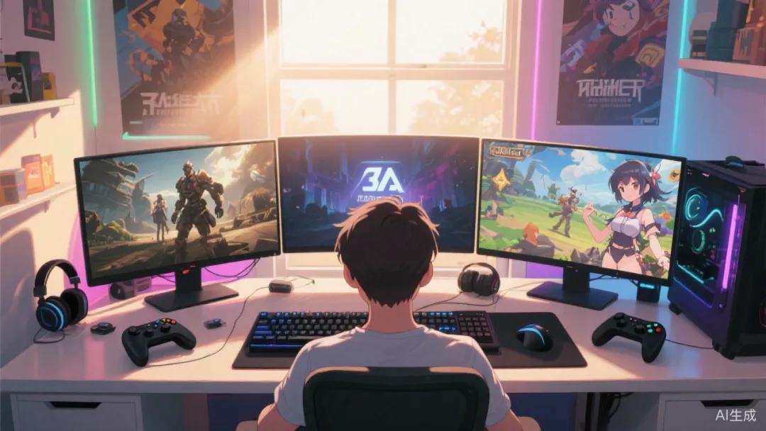 他可能刚花小几千或万元装了机,硬盘里躺着3A大作来验证性能;也可能把更多时间放在电竞网游上,因为朋友一直在喊「上号开黑」;在摸鱼或断网的片刻,他可能会打开经典单机游戏和3A大作;也可能在工作学习的同时,后台开着一款二次元游戏自动挂机。