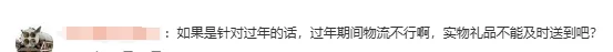 还有网友对春节期间进行线上送礼的体验持质疑态度,考虑到节日期间的快递时效,实物礼品或许不能及时送到。