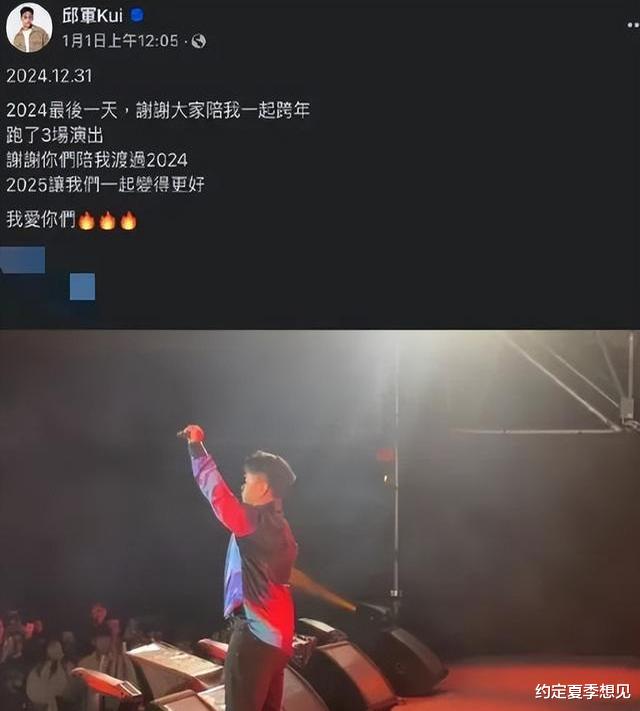 12月31号,连跑了三场演出,还在网上发帖: “2024最后一天,谢谢大家陪我一起跨年,跑了3场演出,谢谢你们陪我度过2024,2025让我们一起变得更好。” 这心可真大啊!