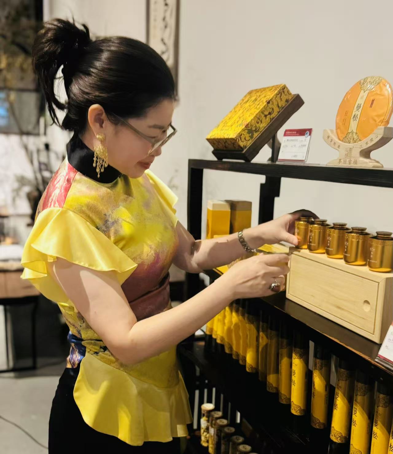 敬卿号曼松贡茶的非遗代表人——许红丽,笑意盈盈地为每一位茶客斟茶。她的指尖,带着山间晨露的清凉;她的讲述,带着皇家身世的骄傲。