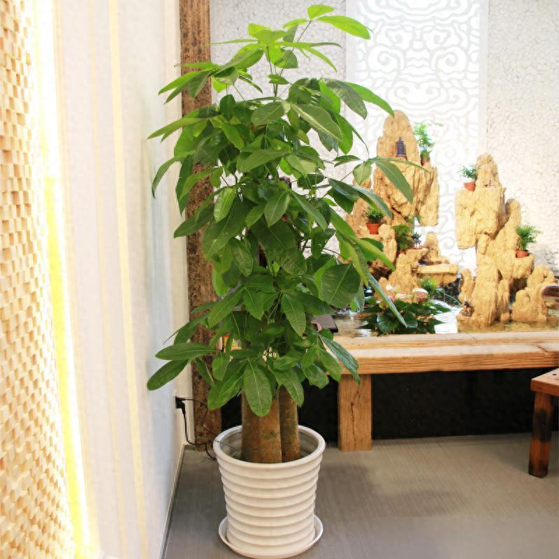 发财树名字讨喜,但十有八九是浇死的。它的树干能储水,宁可干着也别涝着。有个小窍门,经常用湿布擦擦叶子,叶子油亮,光合作用好,长得更旺。