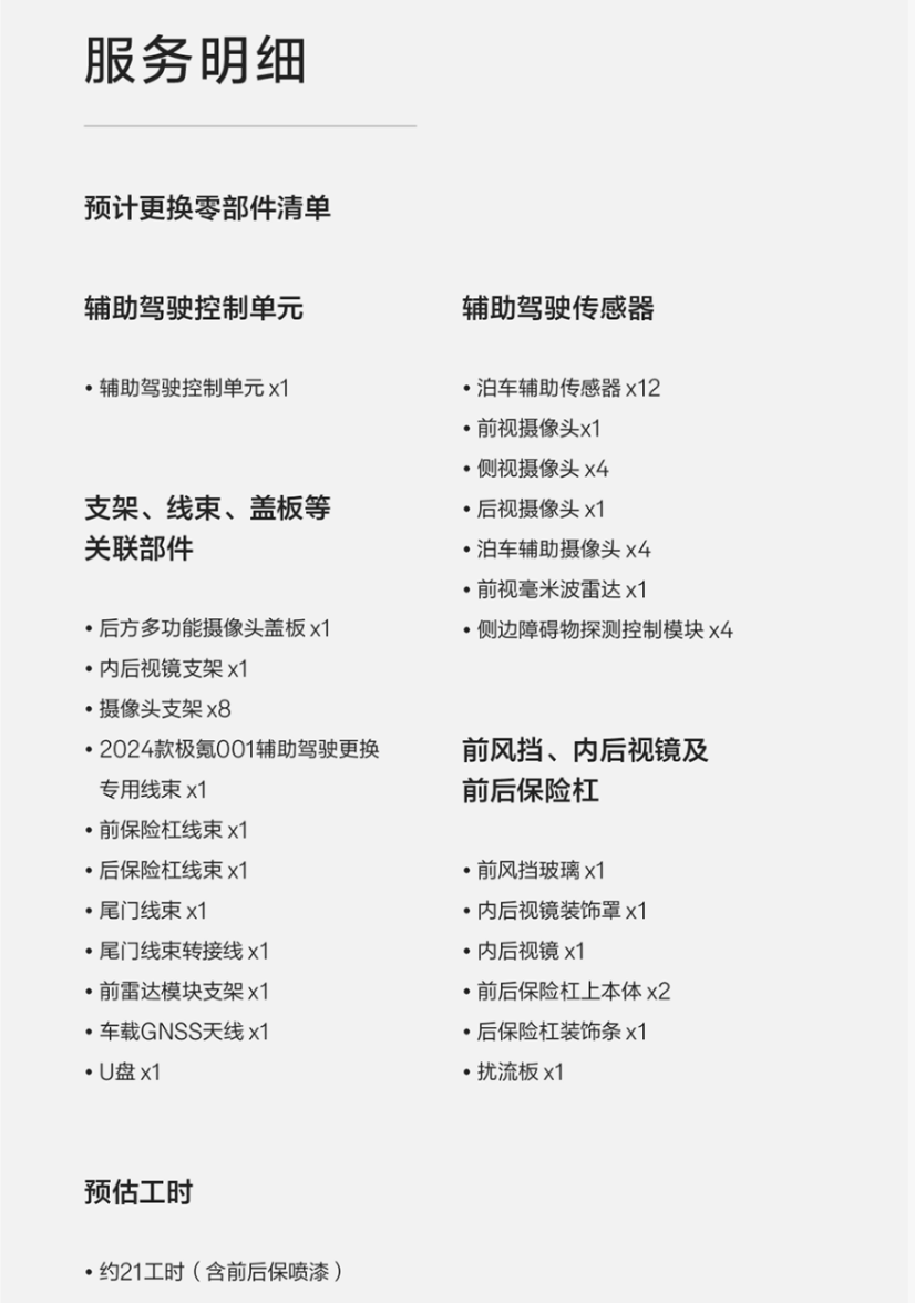 (2024款极氪001辅助驾驶更换-部分零部件样件)