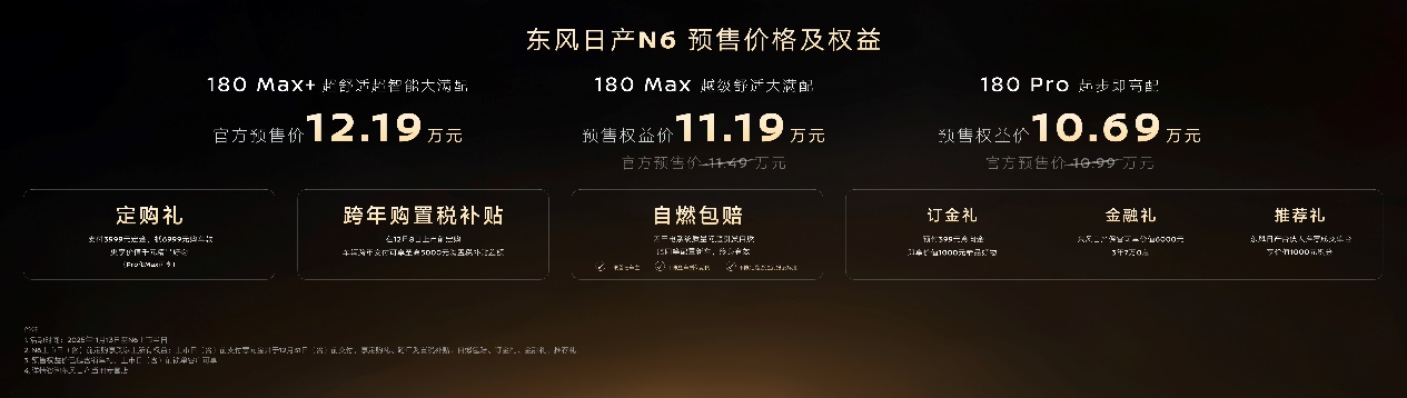 本次预售,N6 推出 180 Pro、180 Max、180 Max + 三个版本,全系标配 20 度以上大电池与 180 公里纯电长续航,起步即高配。